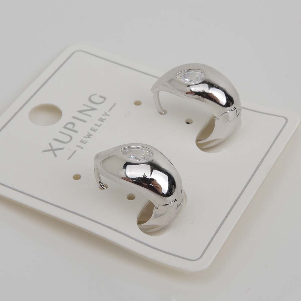Серьги с замком кольцо с родиевым покрытием с цирконами (фианитами)