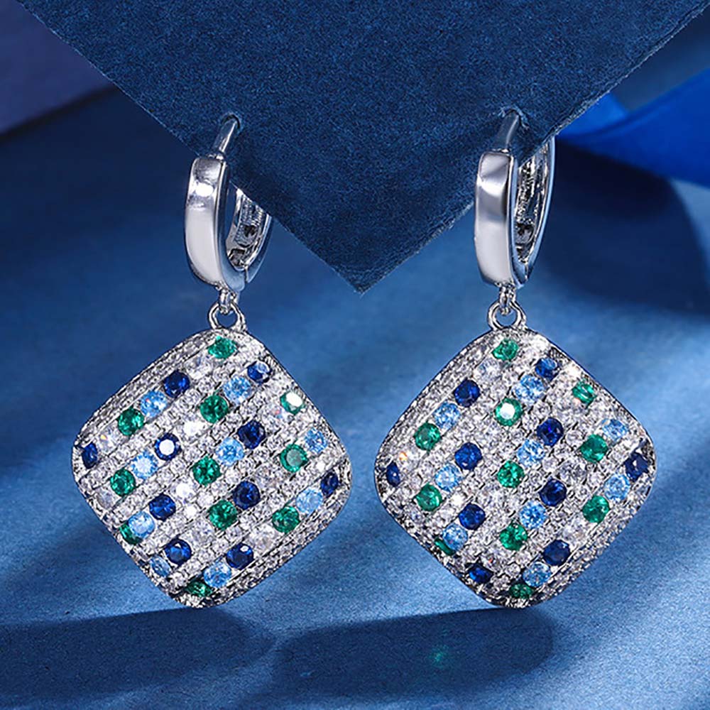 Серьги с замком кольцо с родиевым покрытием с цирконами (фианитами)