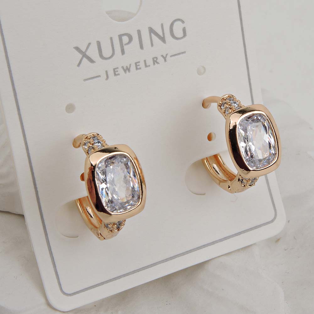 Серьги с замком кольцо с золотым покрытием 18K 1 мкр с цирконами (фианитами)