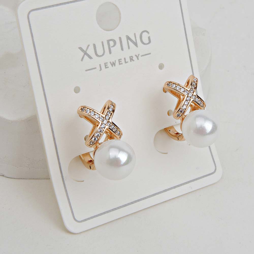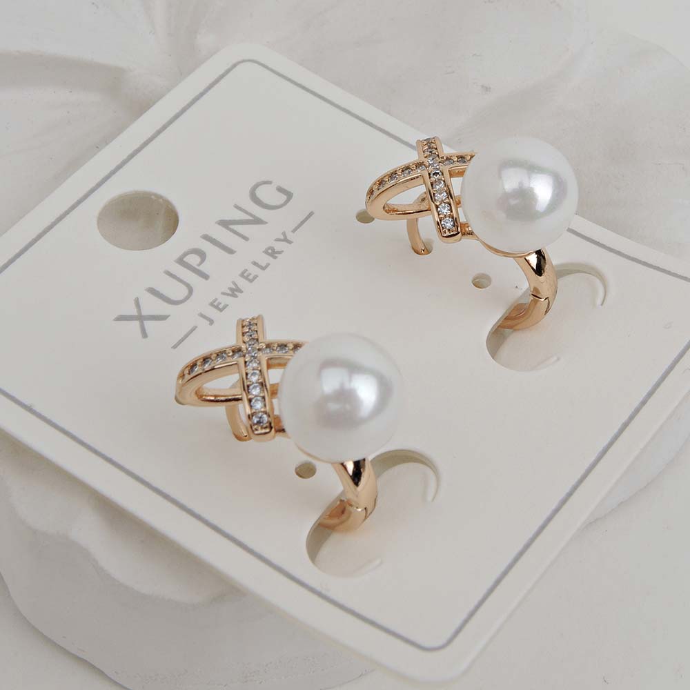 Серьги с замком кольцо с золотым покрытием 18K 1 мкр с цирконами (фианитами)