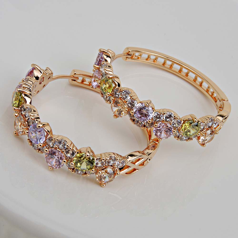 Серьги с замком кольцо с золотым покрытием 18K 1 мкр с цирконами (фианитами)