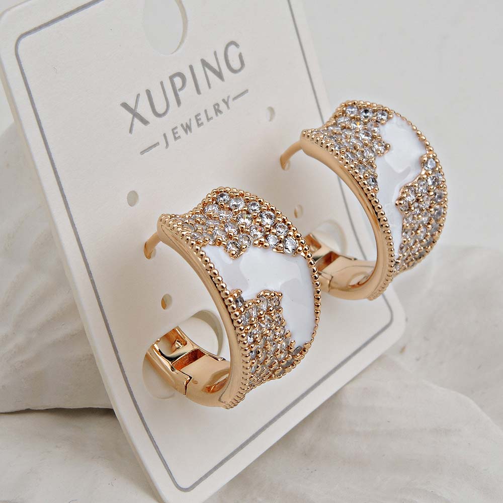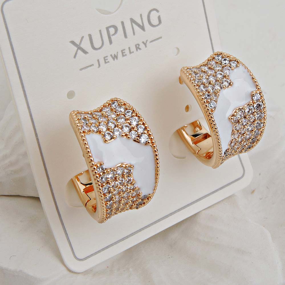 Серьги с замком кольцо с золотым покрытием 18K 1 мкр с цирконами (фианитами)