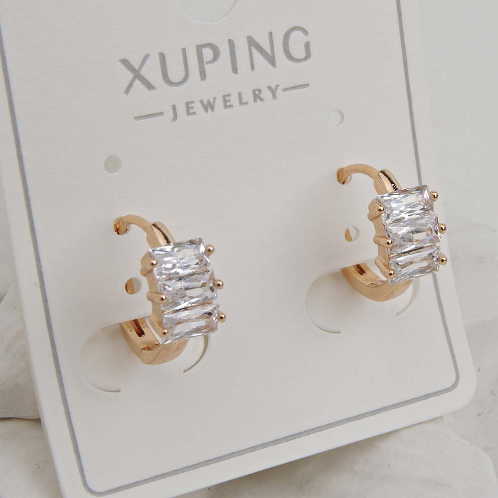Серьги с замком кольцо с золотым покрытием 18K 1 мкр с цирконами (фианитами)