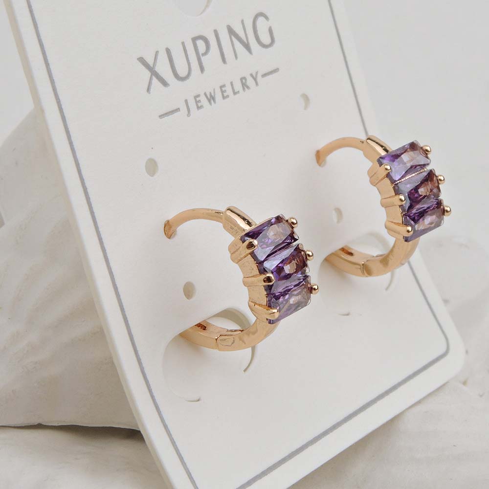 Серьги с замком кольцо с золотым покрытием 18K 1 мкр с цирконами (фианитами)