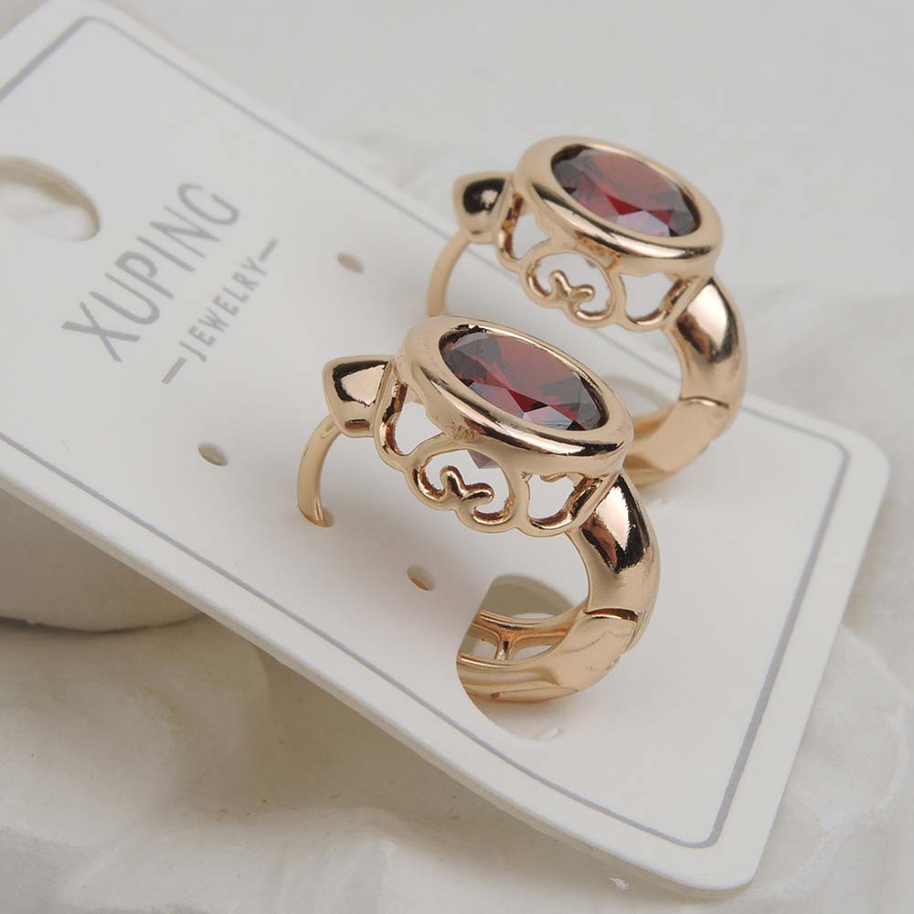Серьги с замком кольцо с золотым покрытием 18K 1 мкр с цирконами (фианитами)