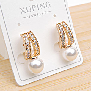 Серьги с замком кольцо с золотым покрытием 18K 1 мкр с цирконами (фианитами)