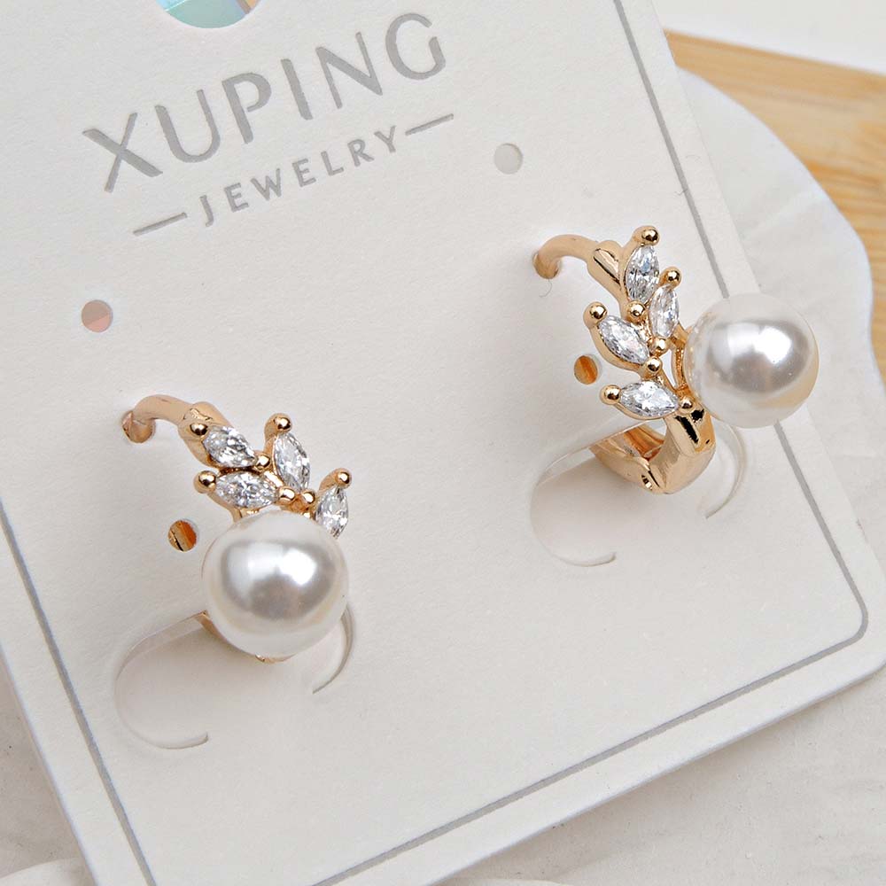 Серьги с замком кольцо с золотым покрытием 18K 1 мкр с цирконами (фианитами)