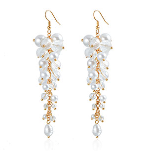 Серьги длинные на гвоздиках в вечернем стиле с золотым покрытием 14K 1 мкр с искусственным жемчугом Майорка (покрытие натуральный перла арт.13 3704(id277041)